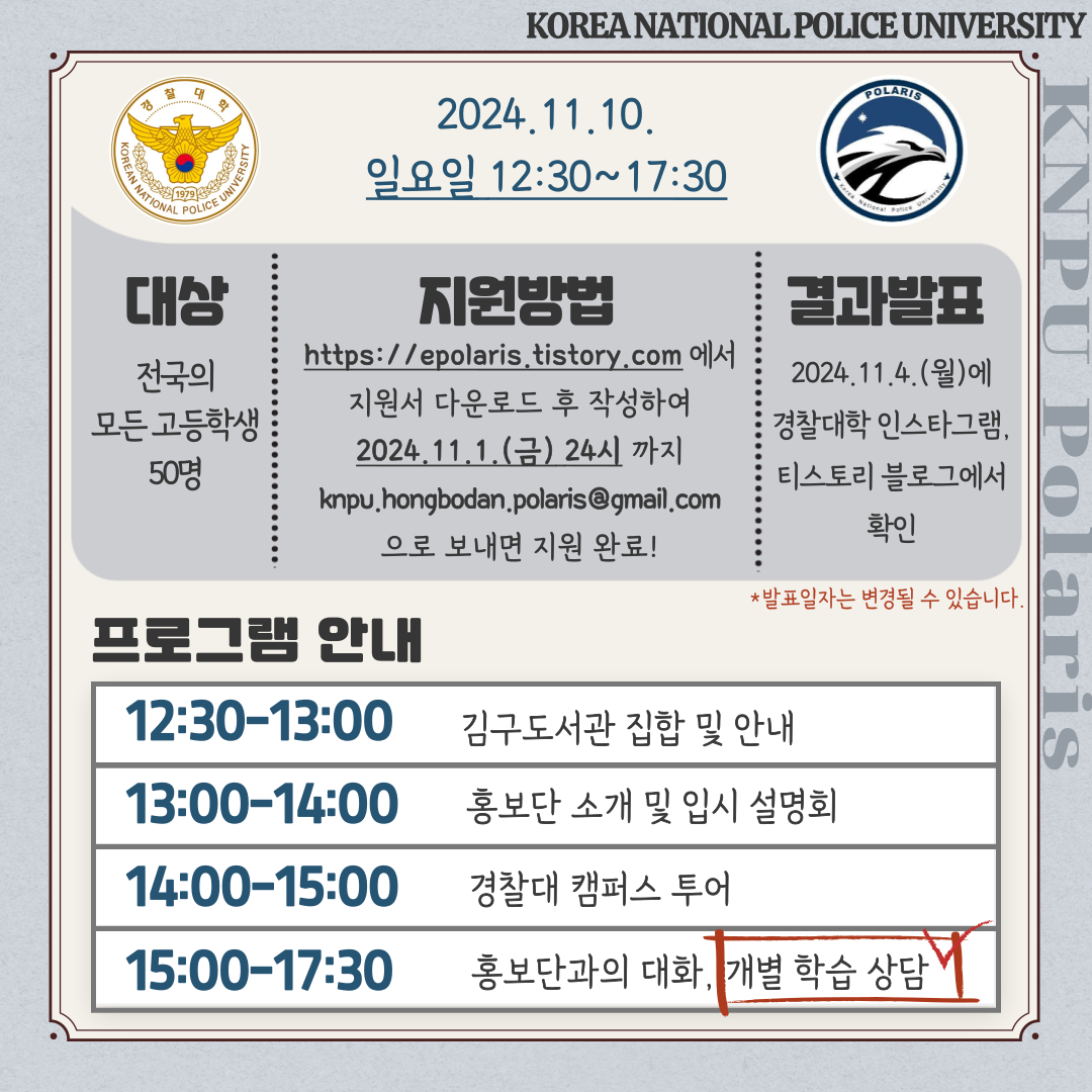 안녕하세요, 경찰대학 홍보단 폴라리스입니다!