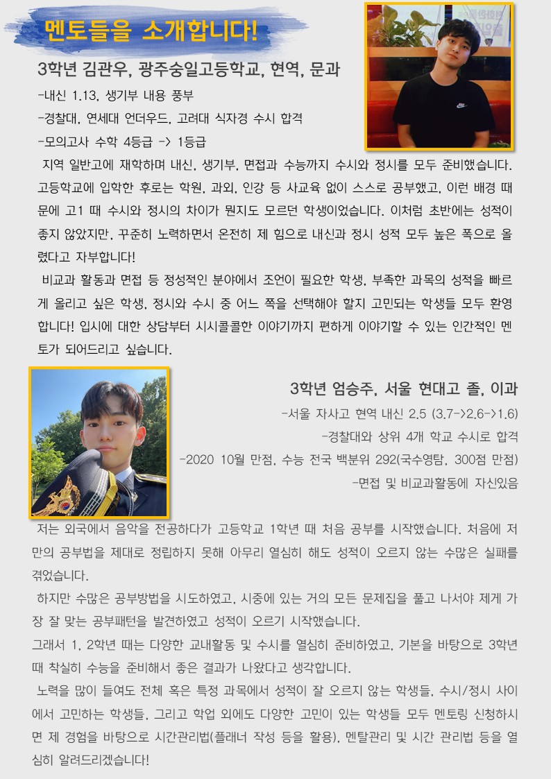 멘토들에 대한 소개는 밑에 있는 프로필에 기재되어 있으니 꼭 읽어보시고 선택해주세요!!~