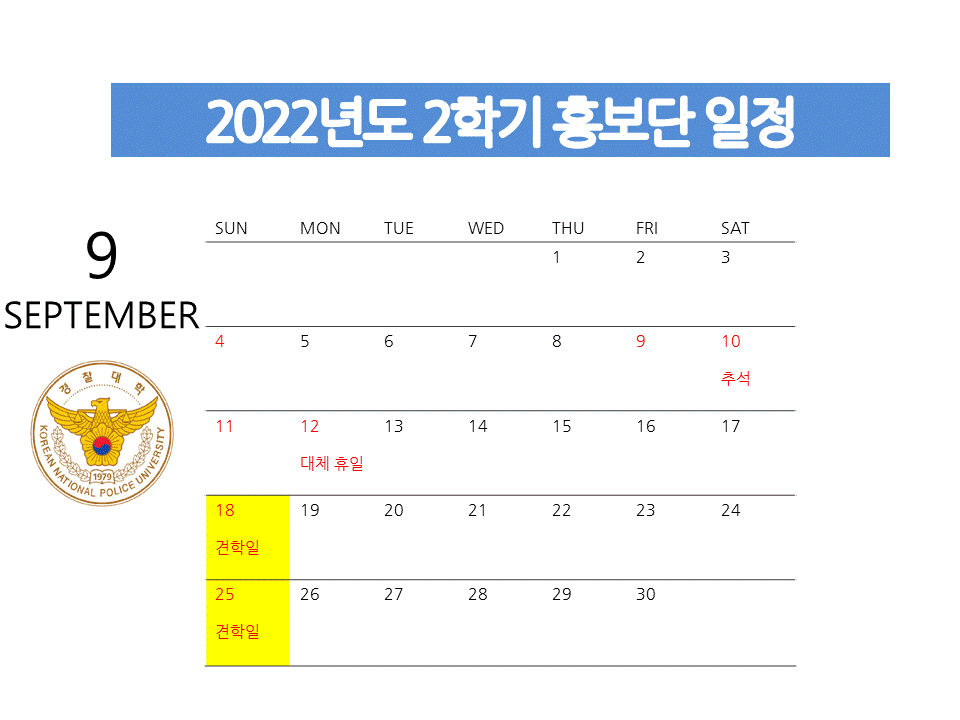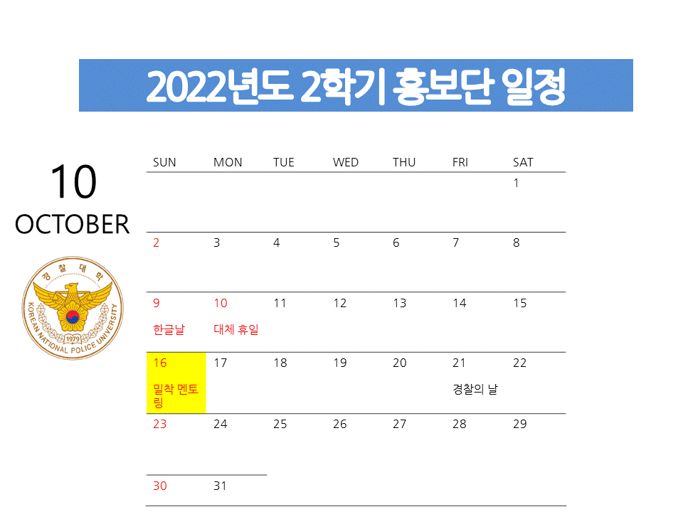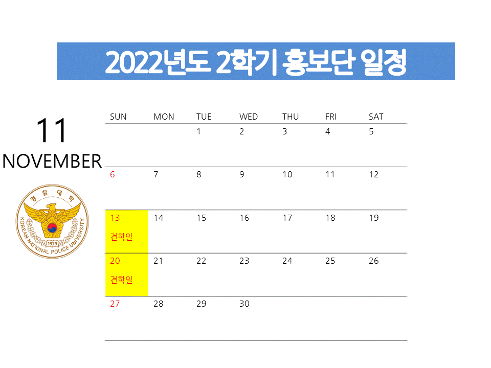 무더웠던 여름이 끝나고, 선선한 가을바람과 함께 2학기가 시작되었습니다. 🍁2학기에도 경찰대학 캠퍼스의 청명한 하늘과 함께 정기견학 및 밀착멘토링을 통해 여러분들을 뵙길 고대하고 있습니다!
